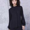 Blusa con plumas en la manga AKÈ. Modelo F551YBF30. Tallas S y L.