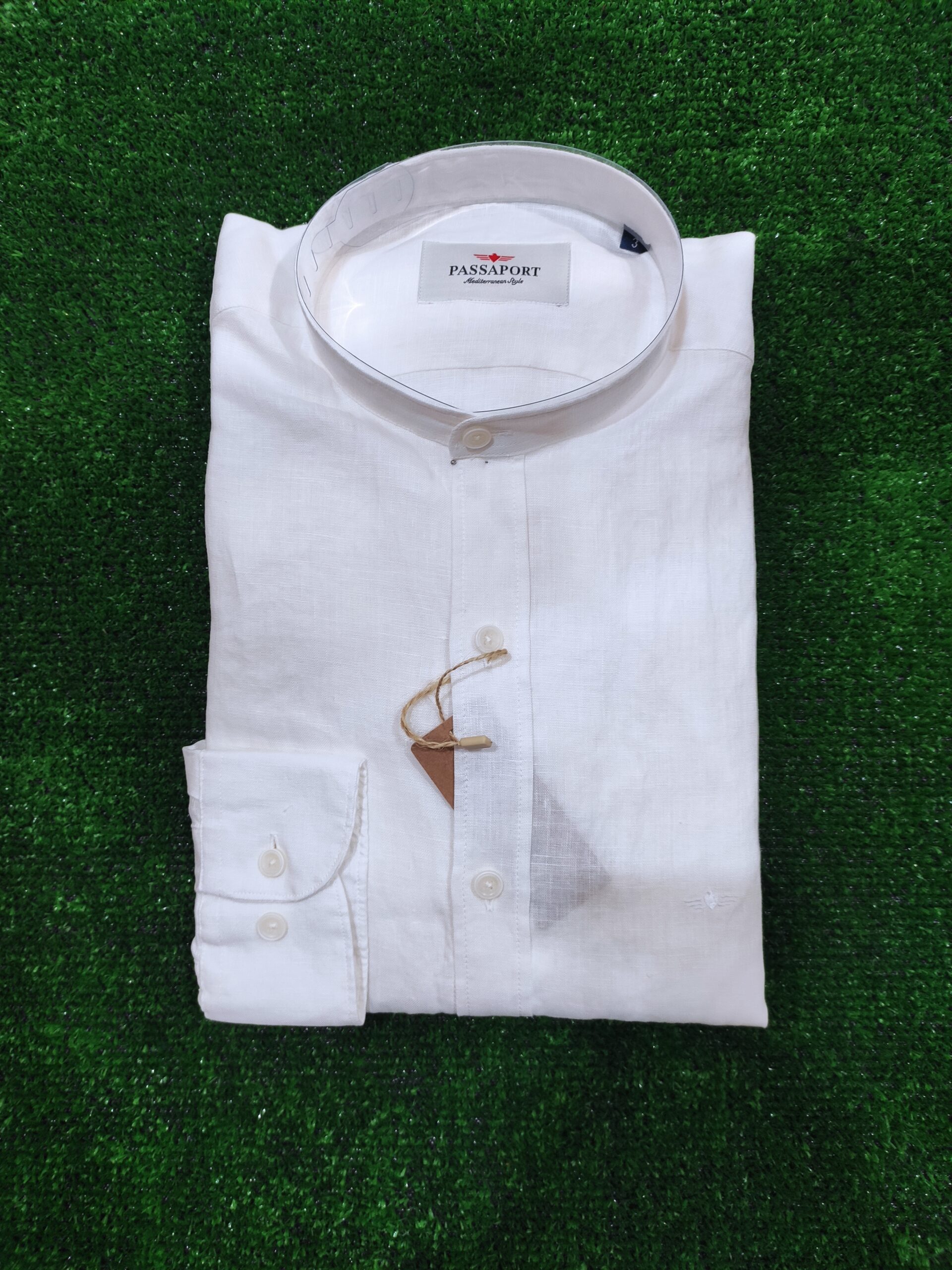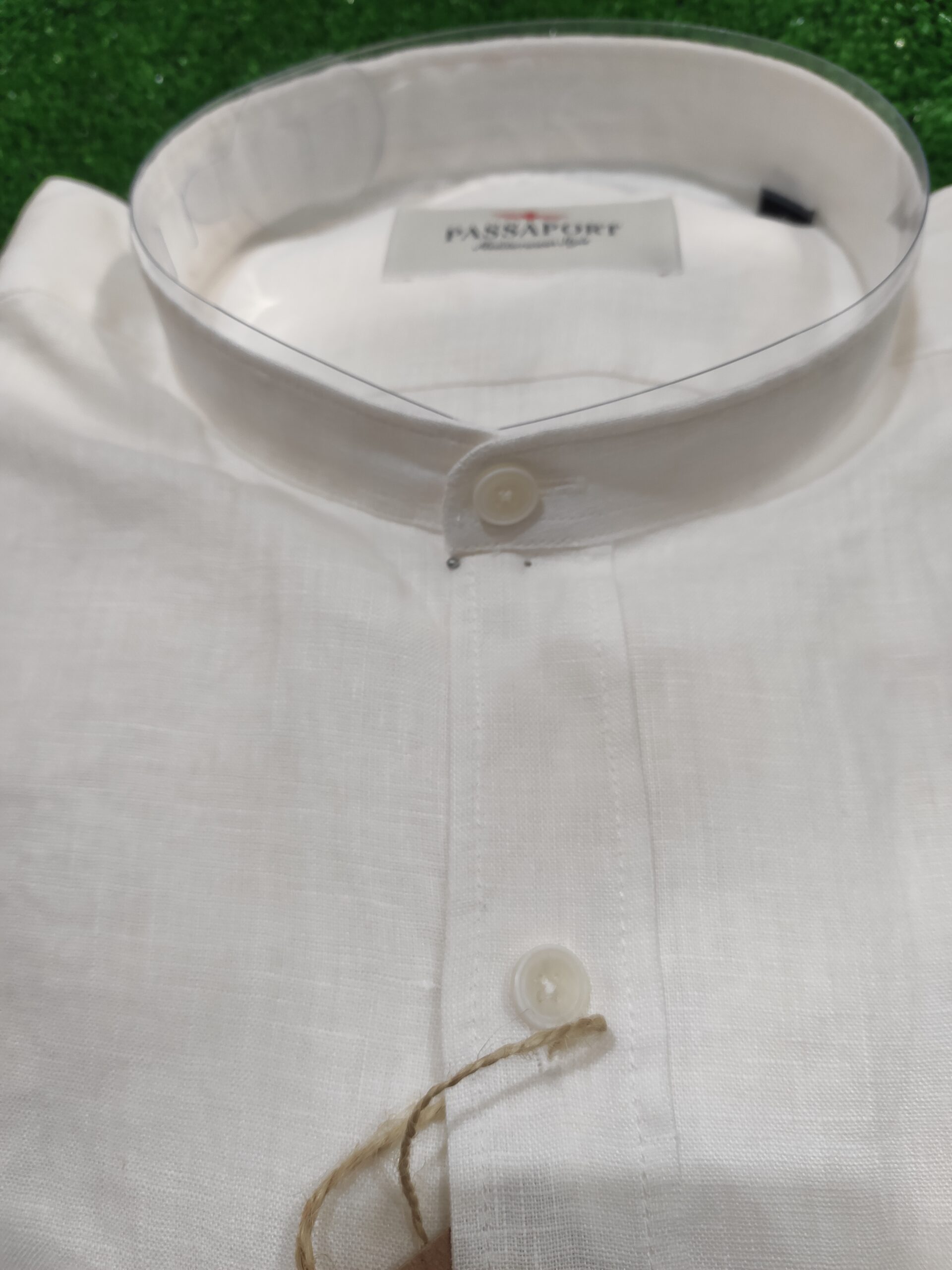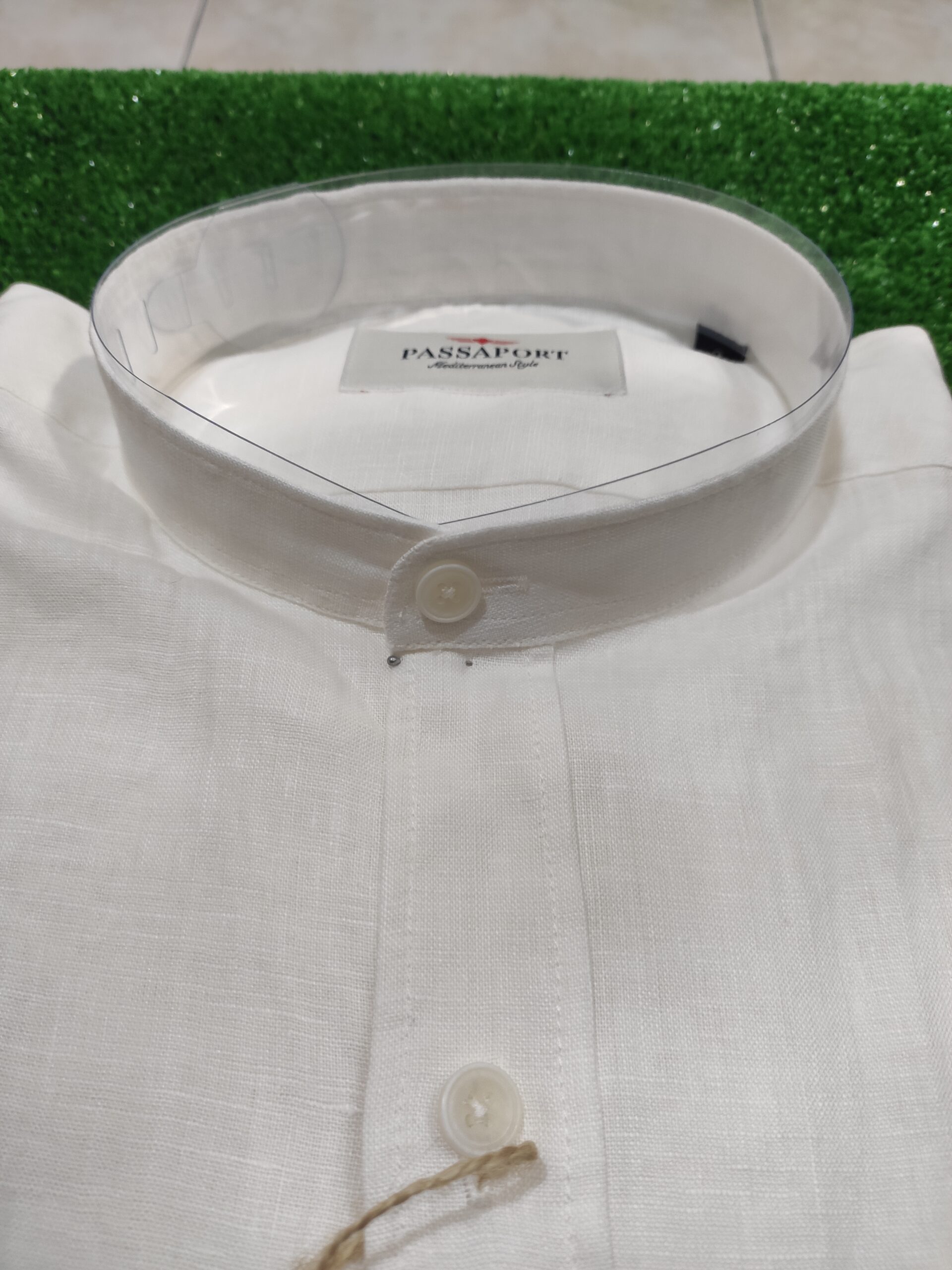 Camisa de lino de cuello maho blanca PASSAPORT. Modelo LINO T. Tallas S M L XL XXL.