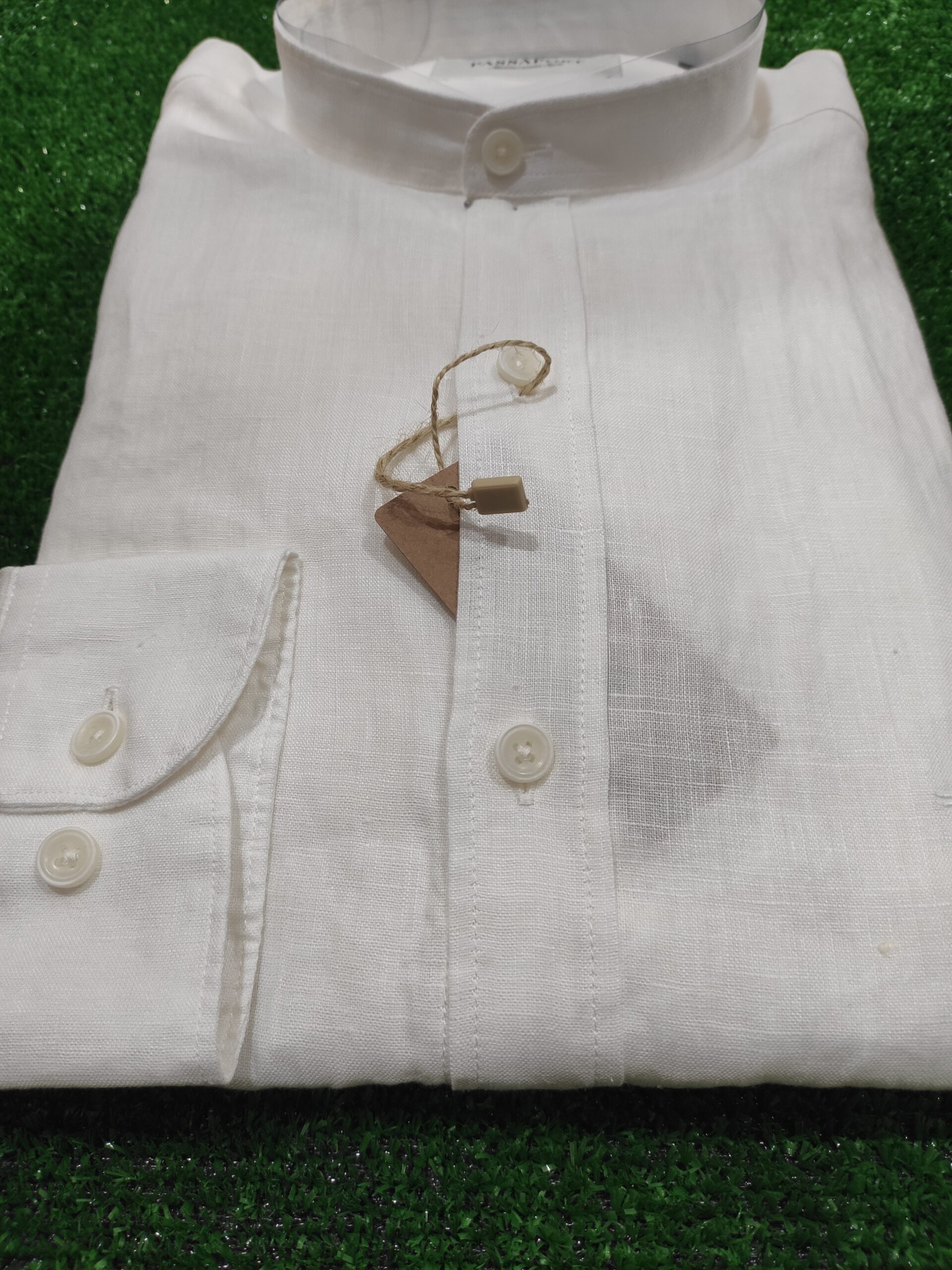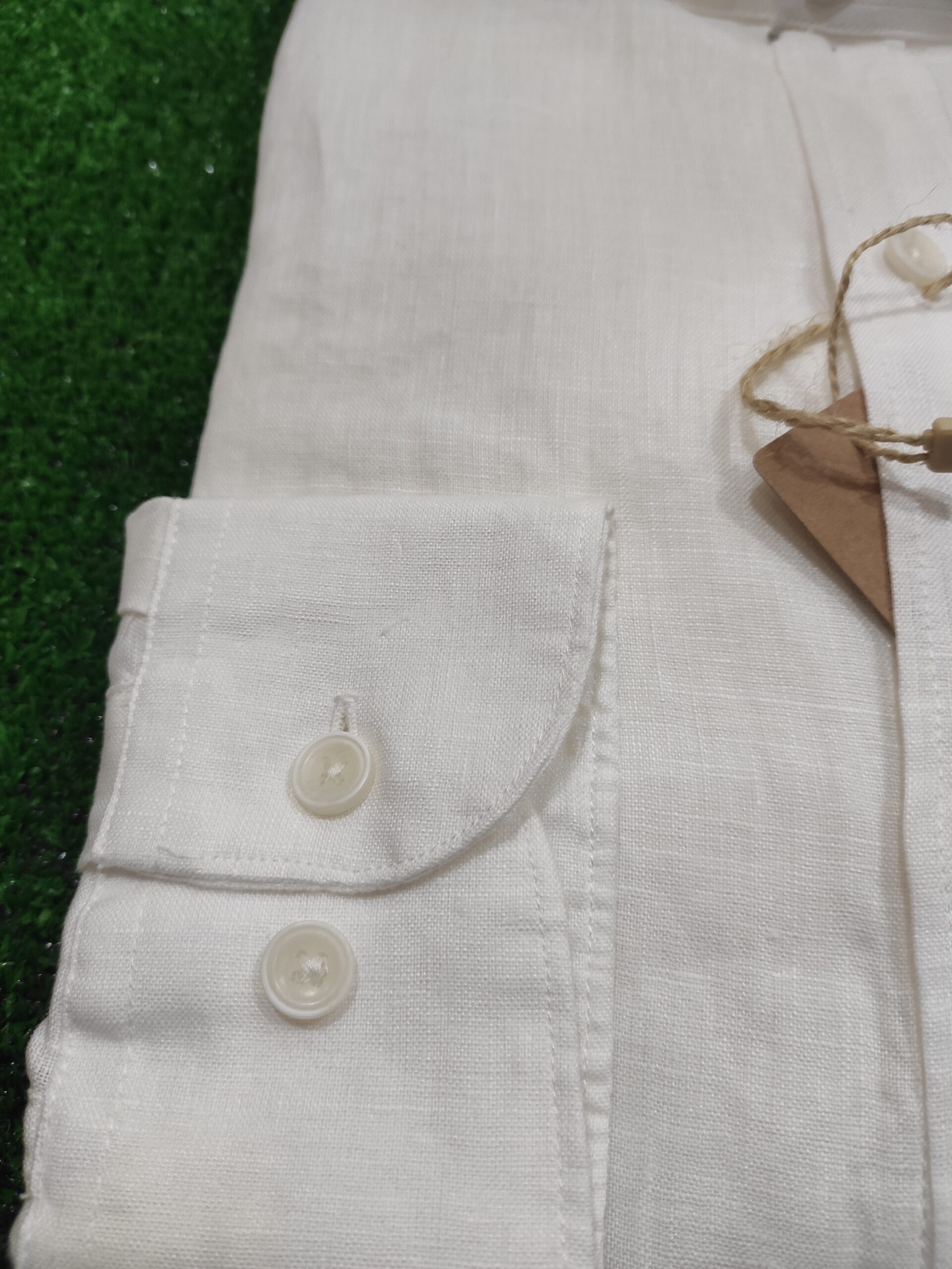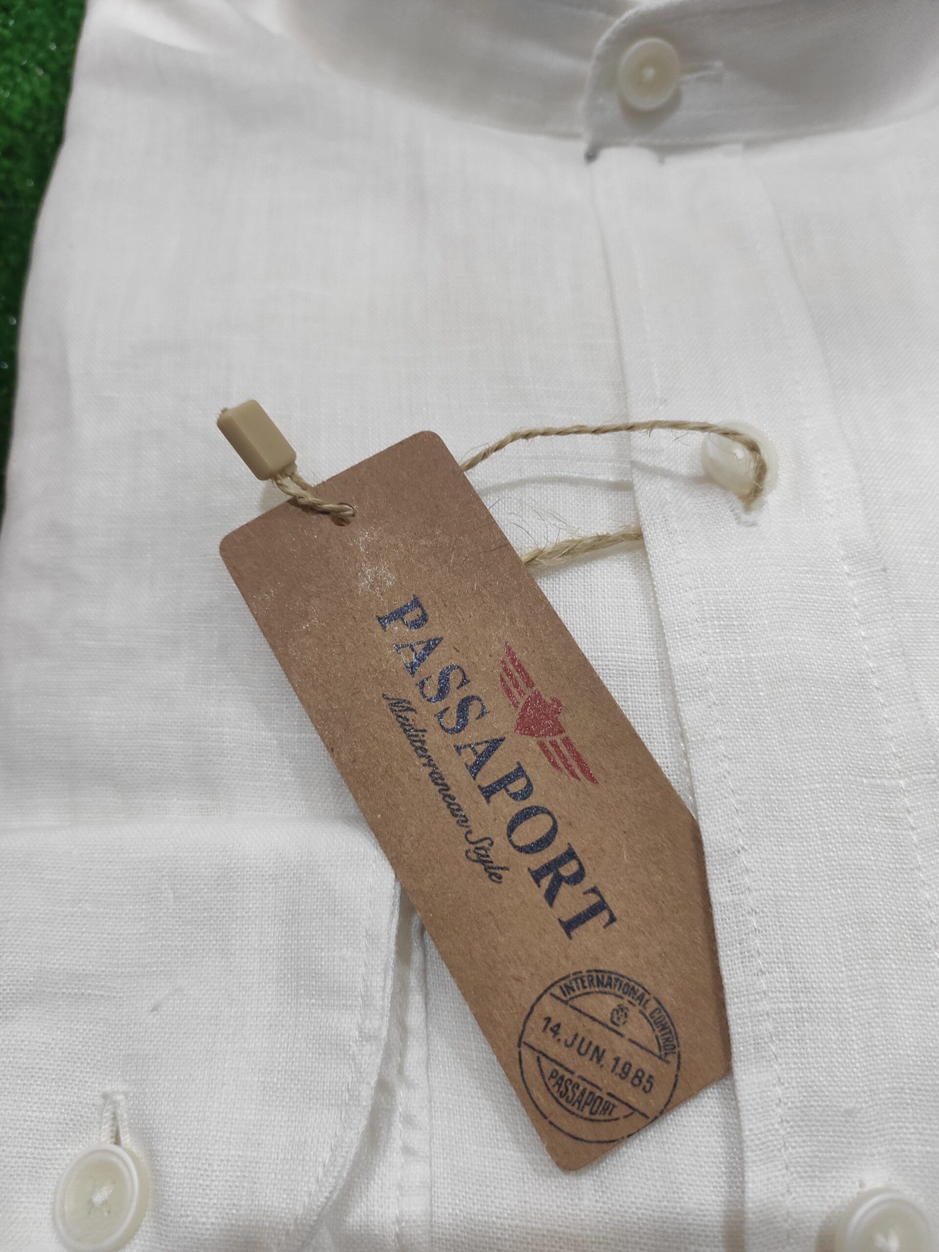 Camisa de lino de cuello maho blanca PASSAPORT. Modelo LINO T. Tallas S M L XL XXL.