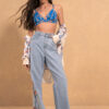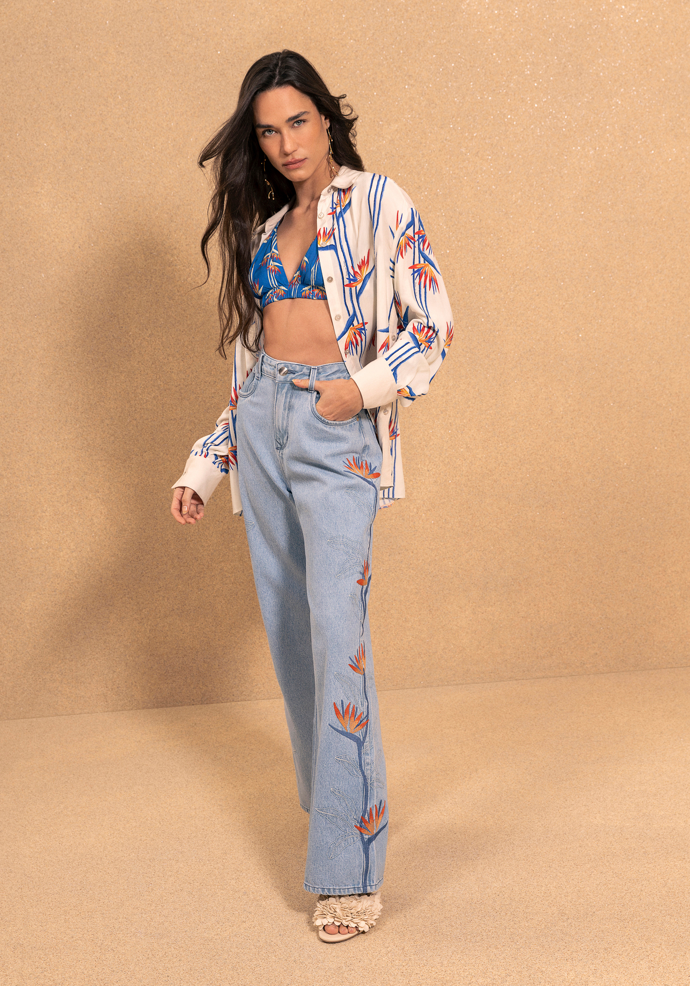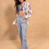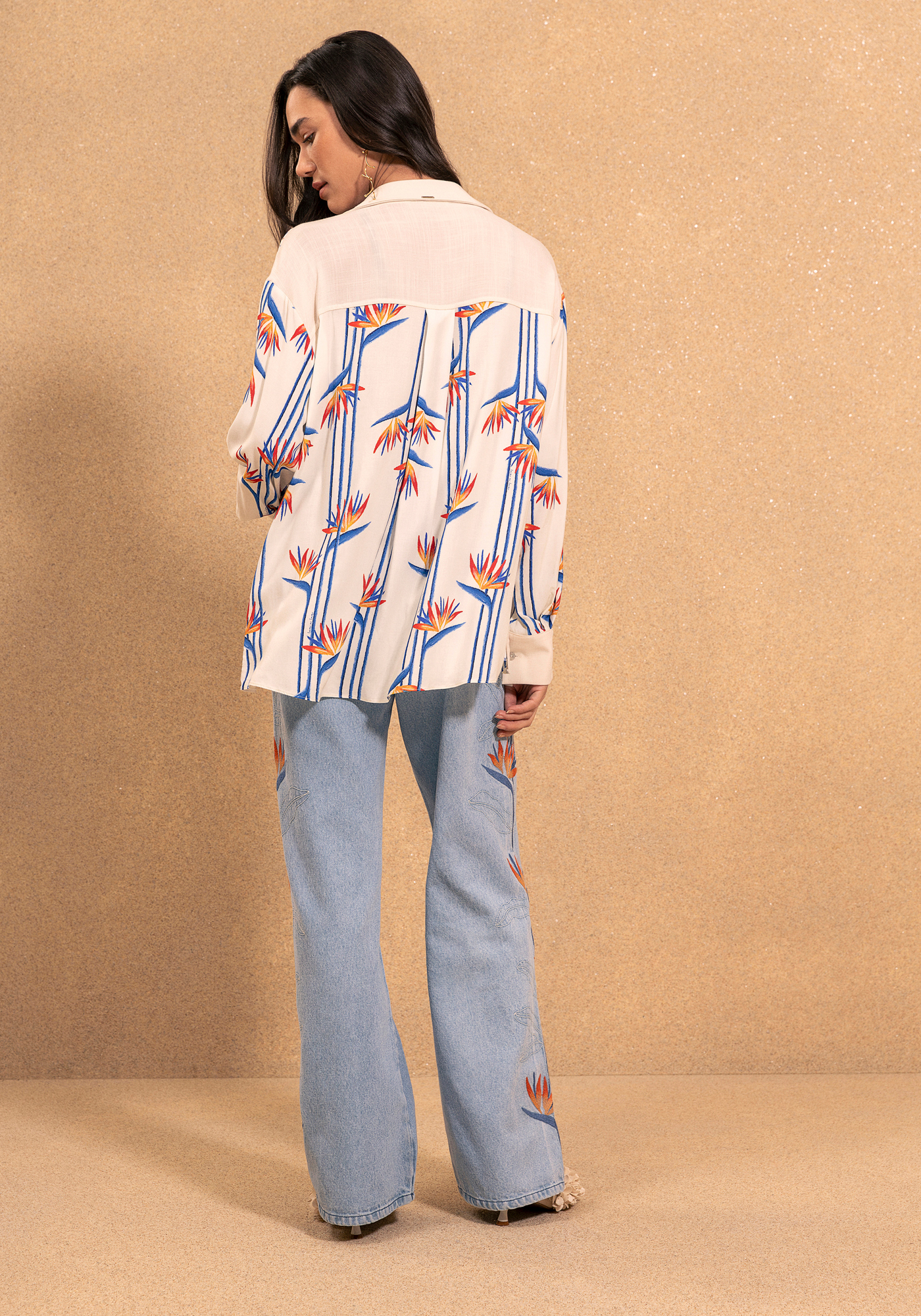 Esta camisa larga estampada, con una caída fluida y mangas largas, presenta aberturas laterales con botones que realzan su estilo moderno. Una opción versátil que combina a la perfección con atuendos casuales y elegantes.