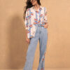 Camisa larga estampada con aberturas laterales y botones