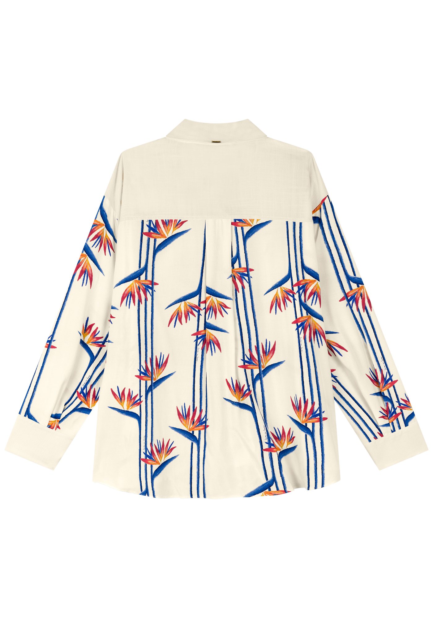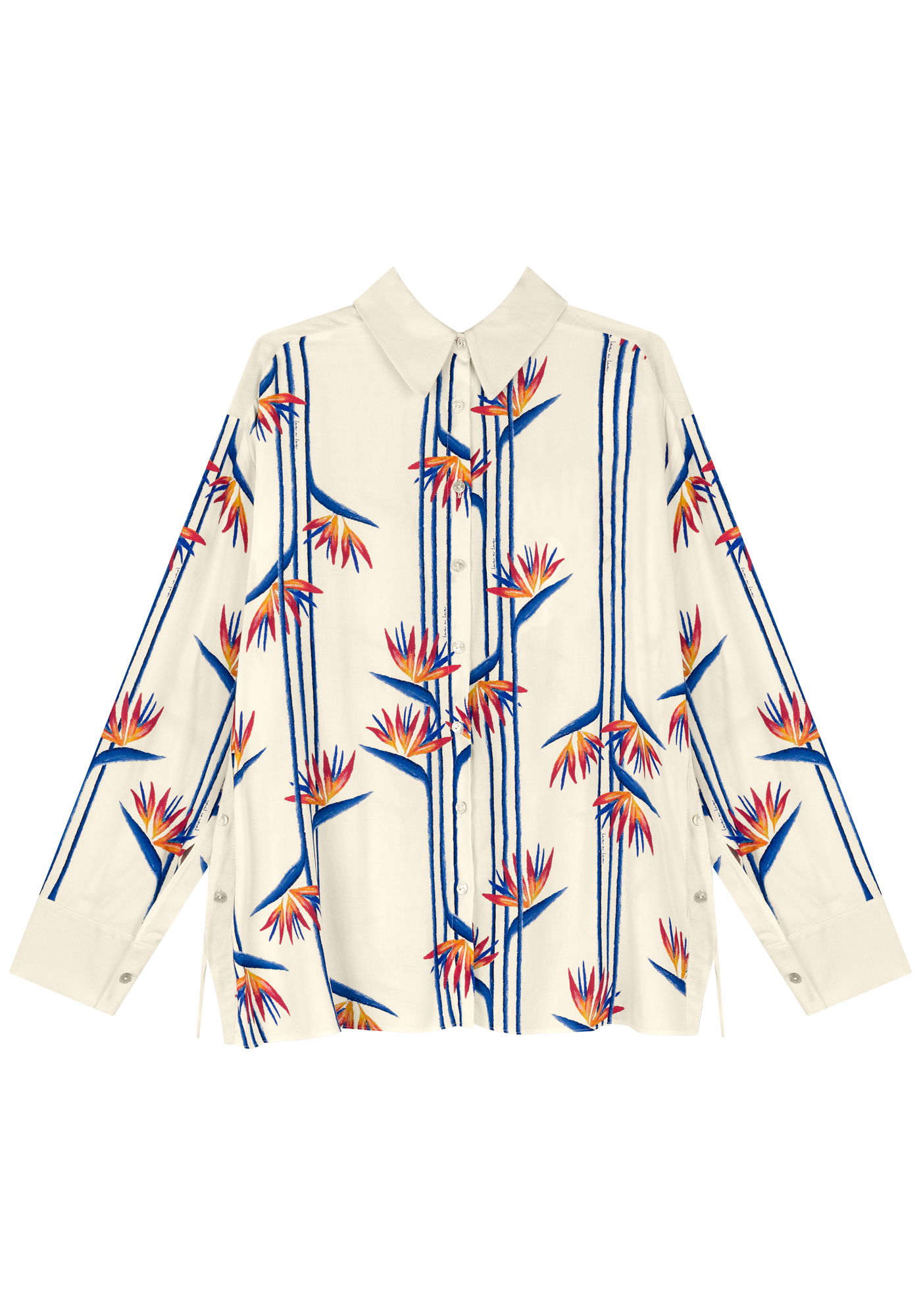 Fabricado con viscosa de origen responsable, este tejido ligeramente estructurado tiene una caída fluida, mangas largas, cierre de botones, cuello clásico y aberturas laterales con botones.