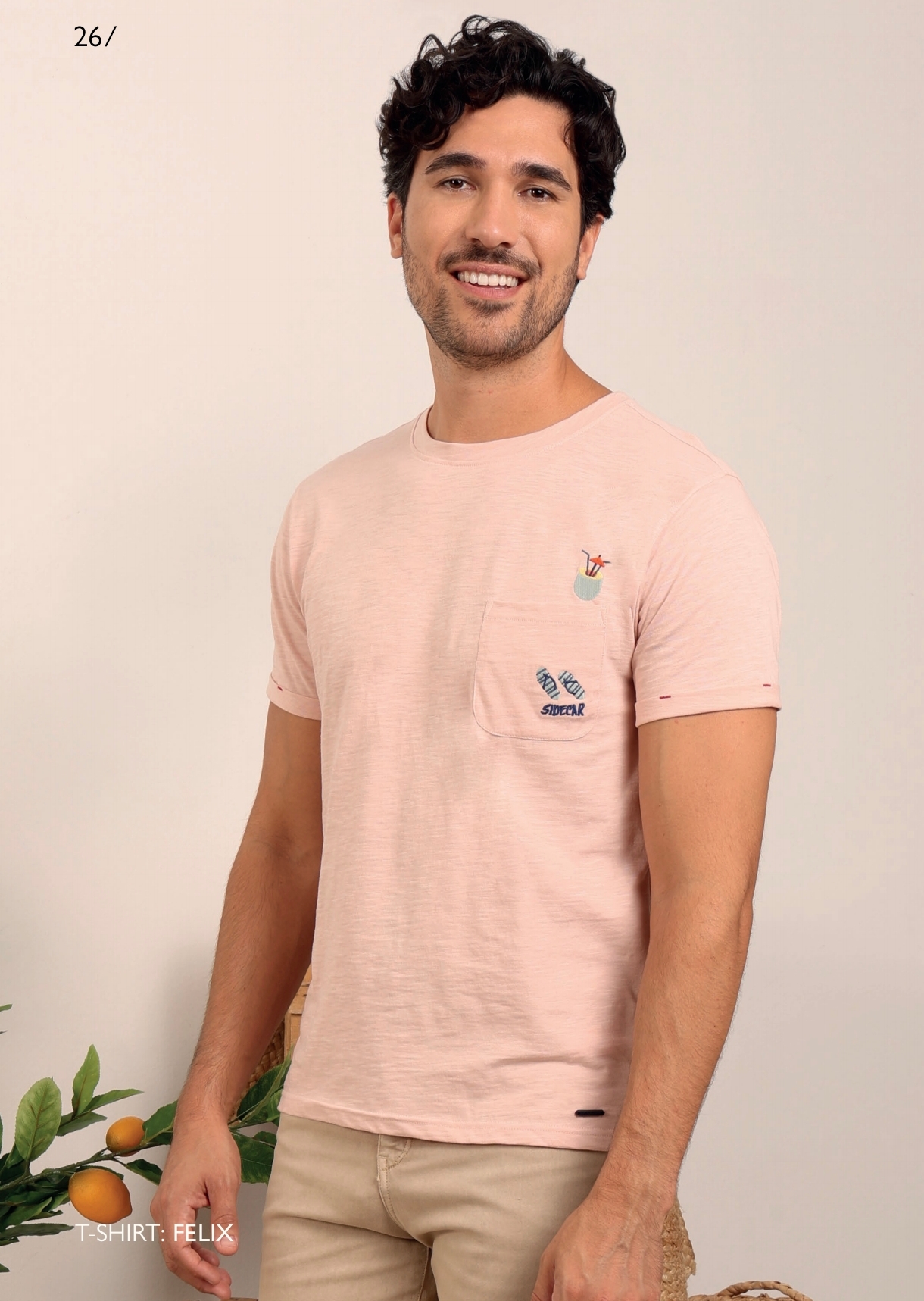 Camiseta de algodón de manga corta con estampación en espalda SIDECAR. Modelo Félix. Tallas M L XL.