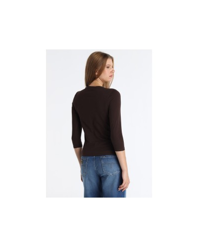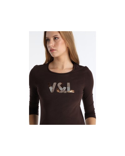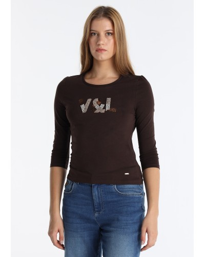 La V&LUCCHINO-Camiseta Manga Larga Aplicación es una prenda de vestir femenina de la categoría de camisetas, diseñada con mangas largas y un detalle de aplicación decorativa. Está confeccionada principalmente en un 95% de algodón, lo que le confiere suavidad y comodidad, y un 5% de elastano, que proporciona elasticidad y un ajuste favorecedor. Esta camiseta se presenta en un elegante color marrón, ideal para combinar con diversas prendas y estilos, ofreciendo versatilidad y estilo en el guardarropa de cualquier mujer.
