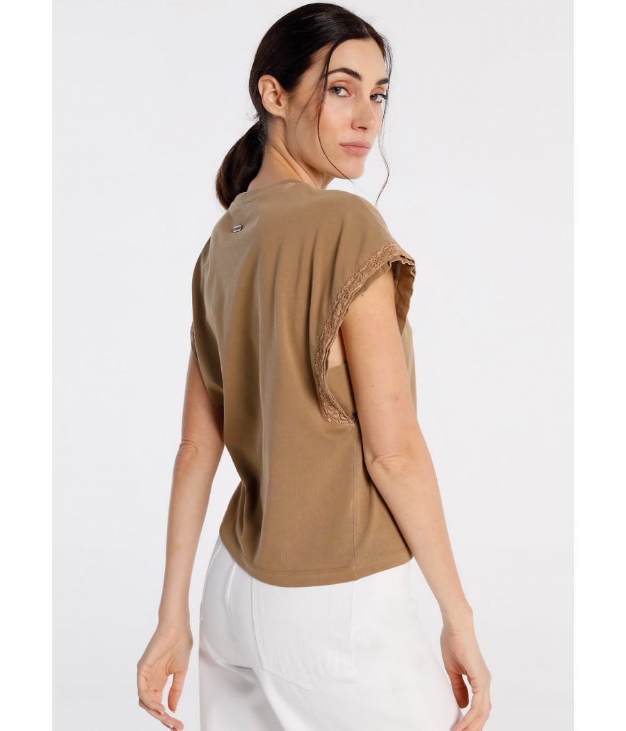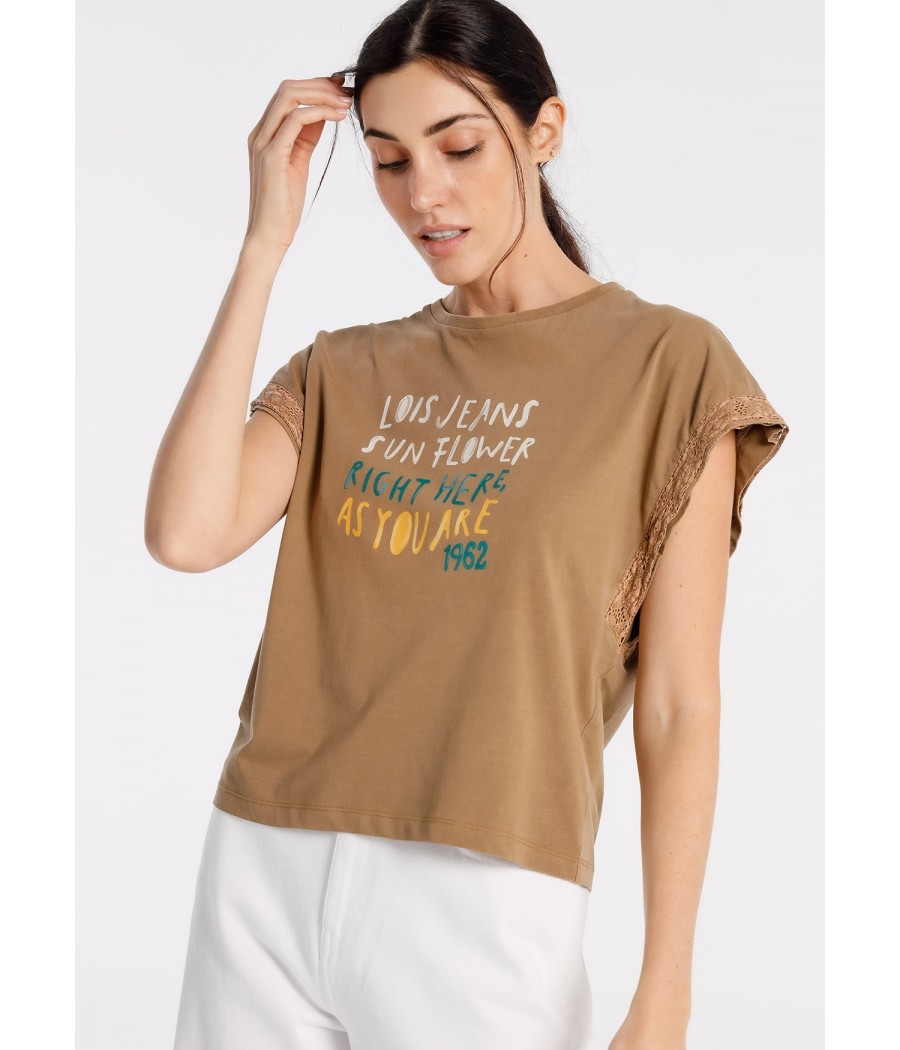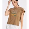 La camiseta LOIS para mujer es una prenda de la marca Athena-Nilla, con un diseño de cinta en las mangas y un corte tipo top. Está confeccionada en un 100% de algodón de color marrón, lo que la hace cómoda y fresca para usar en cualquier ocasión.
