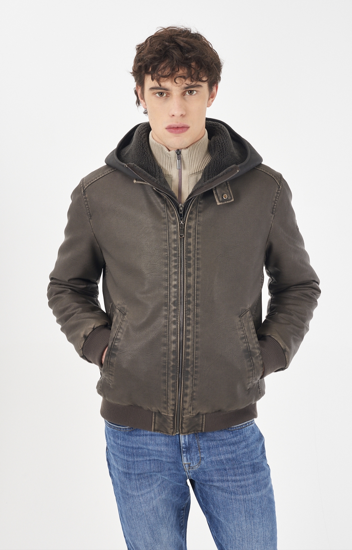 Cazadora ecopiel con chaleco y capucha de borreguito desmontable YES ZEE.