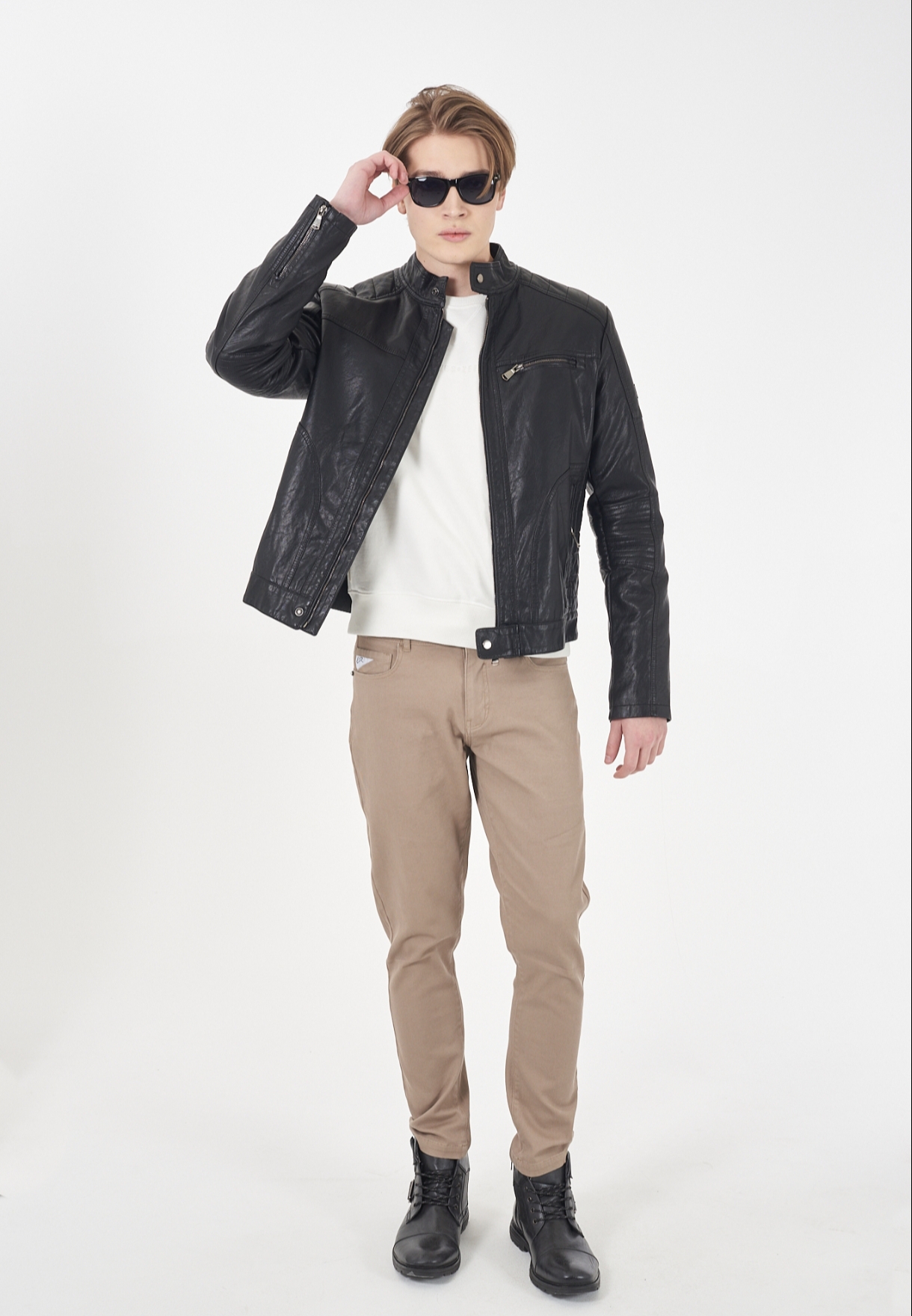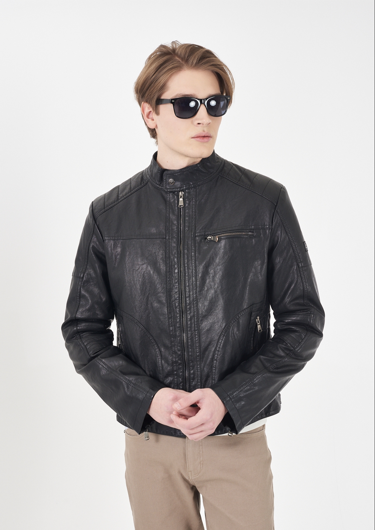 Chaqueta tipo motero ecopiel YES ZEE. Modelo J829/GK00/0801 Negro. Tallas M L XL XXL 3Xl.