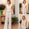 Redefine el concepto de sofisticación relajada con este conjunto de dos piezas en tono crema, una apuesta segura para quienes buscan estilo y frescura en un solo look. Confeccionado con un tejido de caída impecable y detalles artesanales, este conjunto es la definición de lujo discreto.