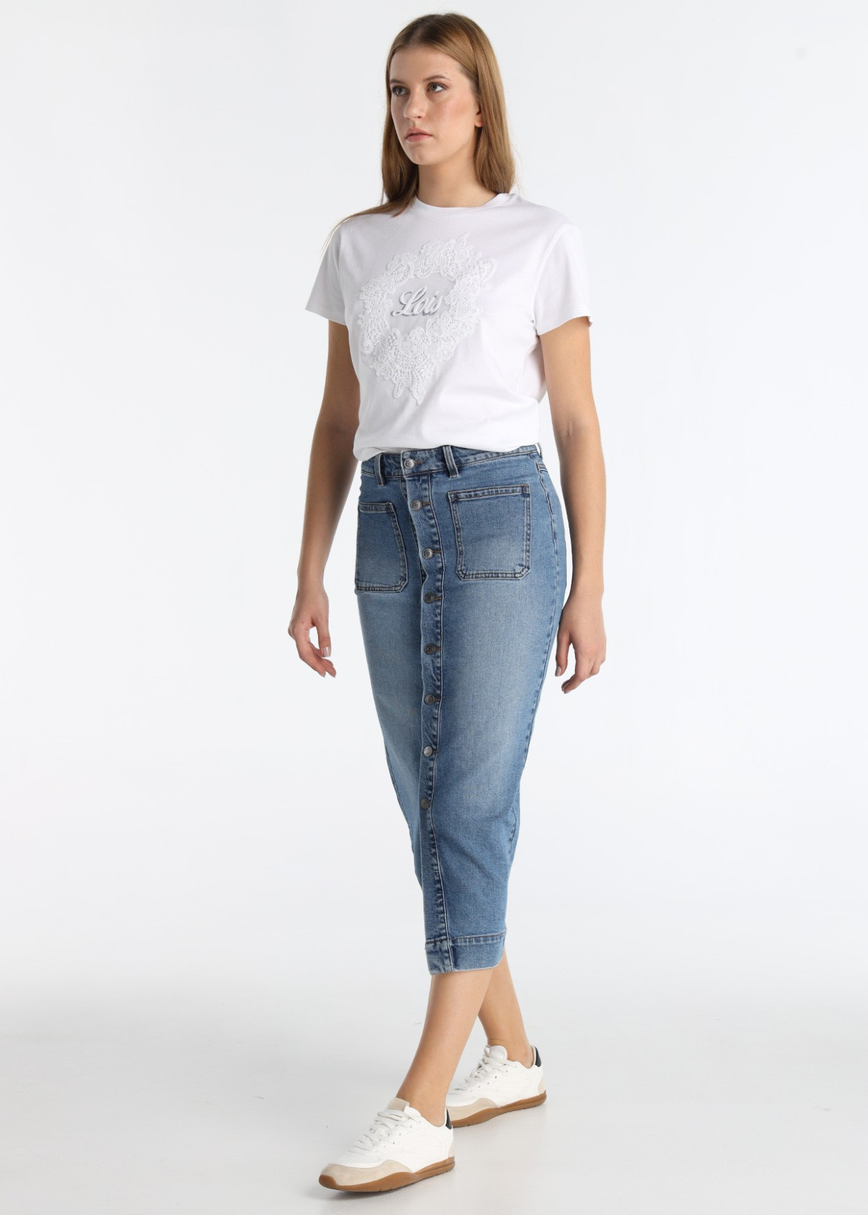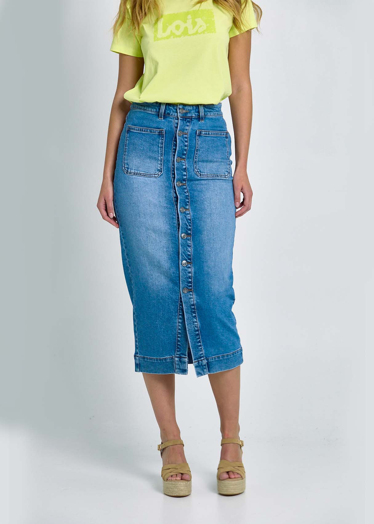 Falda Vaquera abotonada con bolsillos plastrón frontales LOIS. Código 145326. Modelo 411662757/936. Tallas 26/34 28/36 30/38 32/40 33/42 34/44.