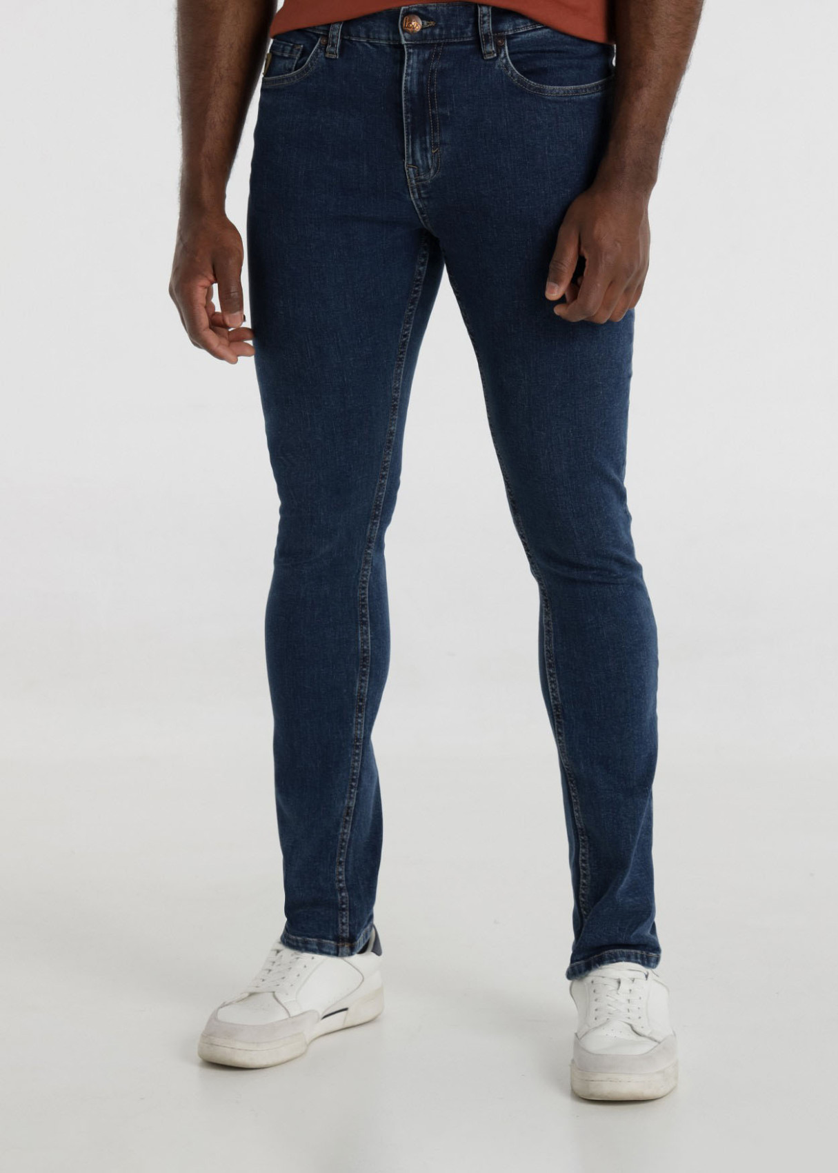 Jeans ROBIN LUC para hombre, de corte slim y tiro medio, diseñados para un ajuste moderno y favorecedor. Su tono azul vintage combina la esencia clásica del denim con un toque contemporáneo. Confeccionados en tejido elástico de alta calidad, ofrecen comodidad, flexibilidad y estilo en una prenda versátil y atemporal.