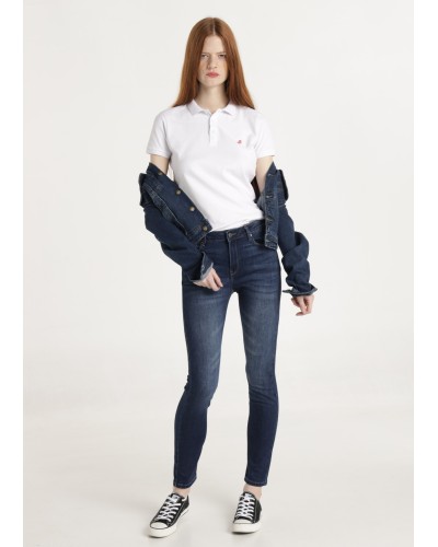 LOIS JEANS-PUSHY-CAMBELL es un modelo de jeans para mujer diseñado para ofrecer un ajuste push up y skinny, con un tiro corto que resalta la figura. Están confeccionados en un color azul oscuro (Dark Blue) y fabricados con un tejido Repreve, compuesto por un 98% de algodón y un 2% de elastano, lo que proporciona comodidad y elasticidad. Estos jeans combinan estilo y funcionalidad, siendo ideales para quienes buscan una prenda versátil y moderna.