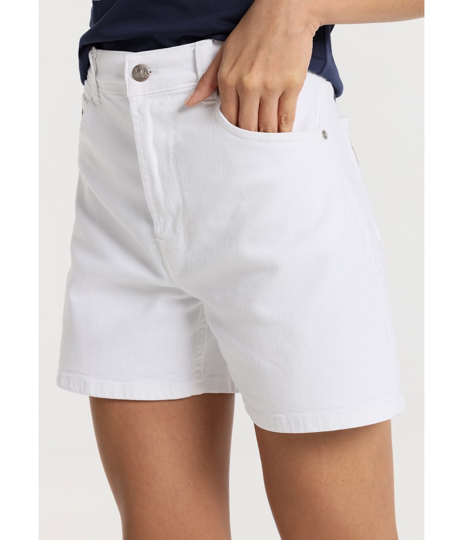 La prenda «LOIS MUJER-LENIA-SUN Short Color Mom Tiro Largo 5 Bolsillos Color-SHORTS-Blanco-99% ALGODON 1% ELASTANO» es un short de estilo «Mom» diseñado para mujeres, caracterizado por su tiro largo y su confección en un tejido compuesto por 99% algodón y 1% elastano, lo que le proporciona una combinación de comodidad y elasticidad. Este short de color blanco cuenta con cinco bolsillos, ofreciendo tanto funcionalidad como un diseño clásico y versátil, ideal para diversas ocasiones casuales.