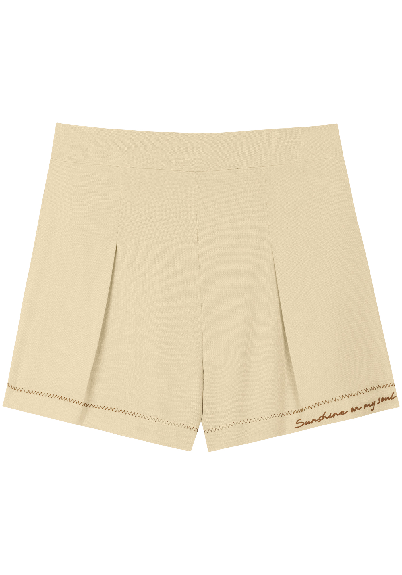 Shorts de tiro alto con detalles bordados y acabado en lino.