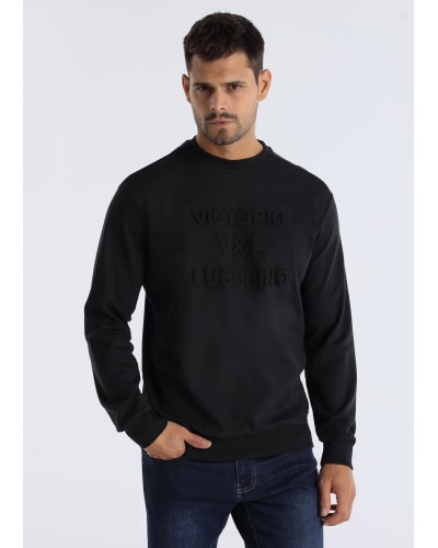 Sudadera cuello caja con logo en relieve VICTORIO & LUCCHINO. Código 143955. Referencia 660377296/799. Tallas S M L XL XXL 3XL.