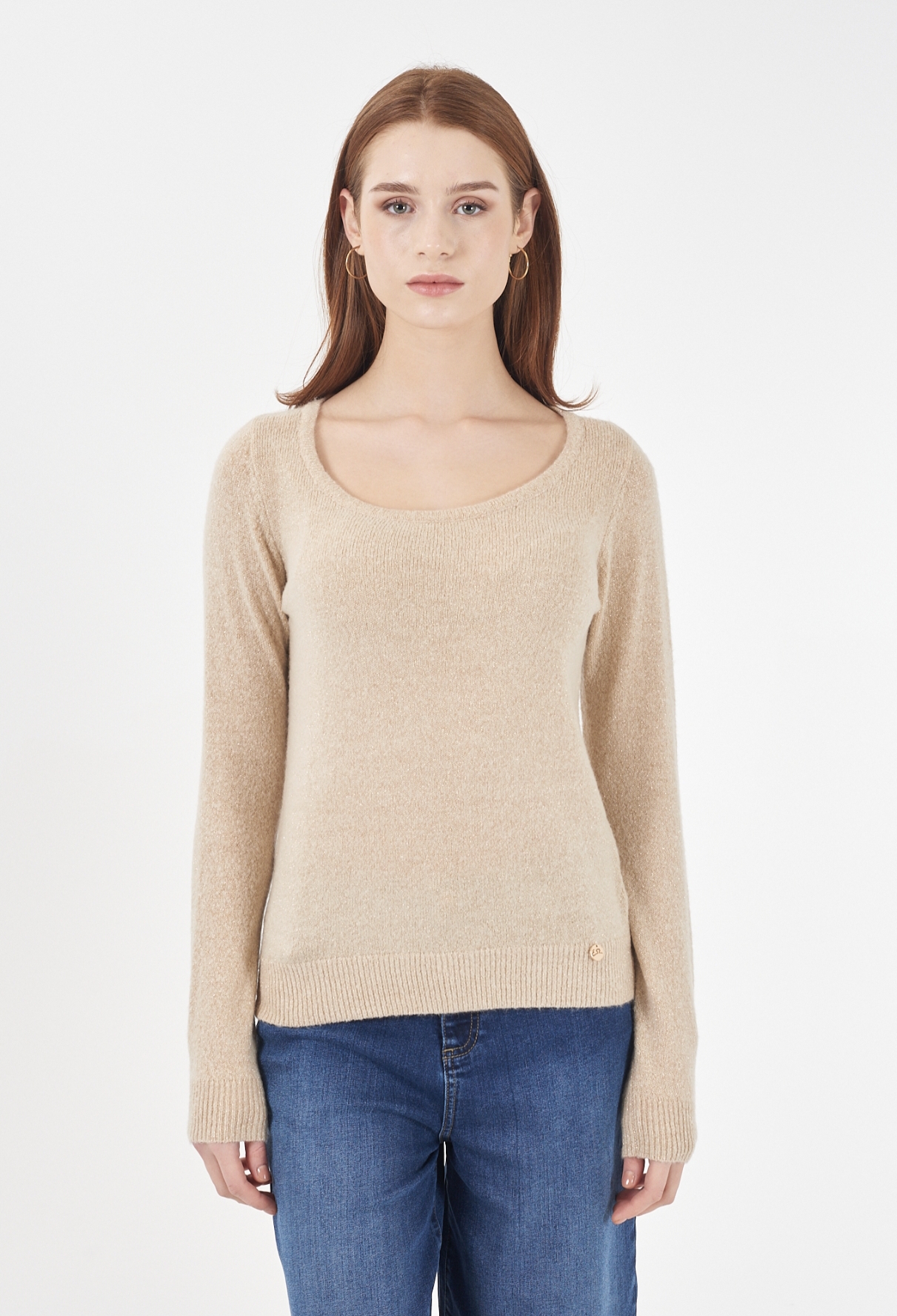 Sueter de punto con escote Madonna YES ZEE. Modelo M058/BT00/0562/0222. Disponible en color rojo/burdeos y beige.