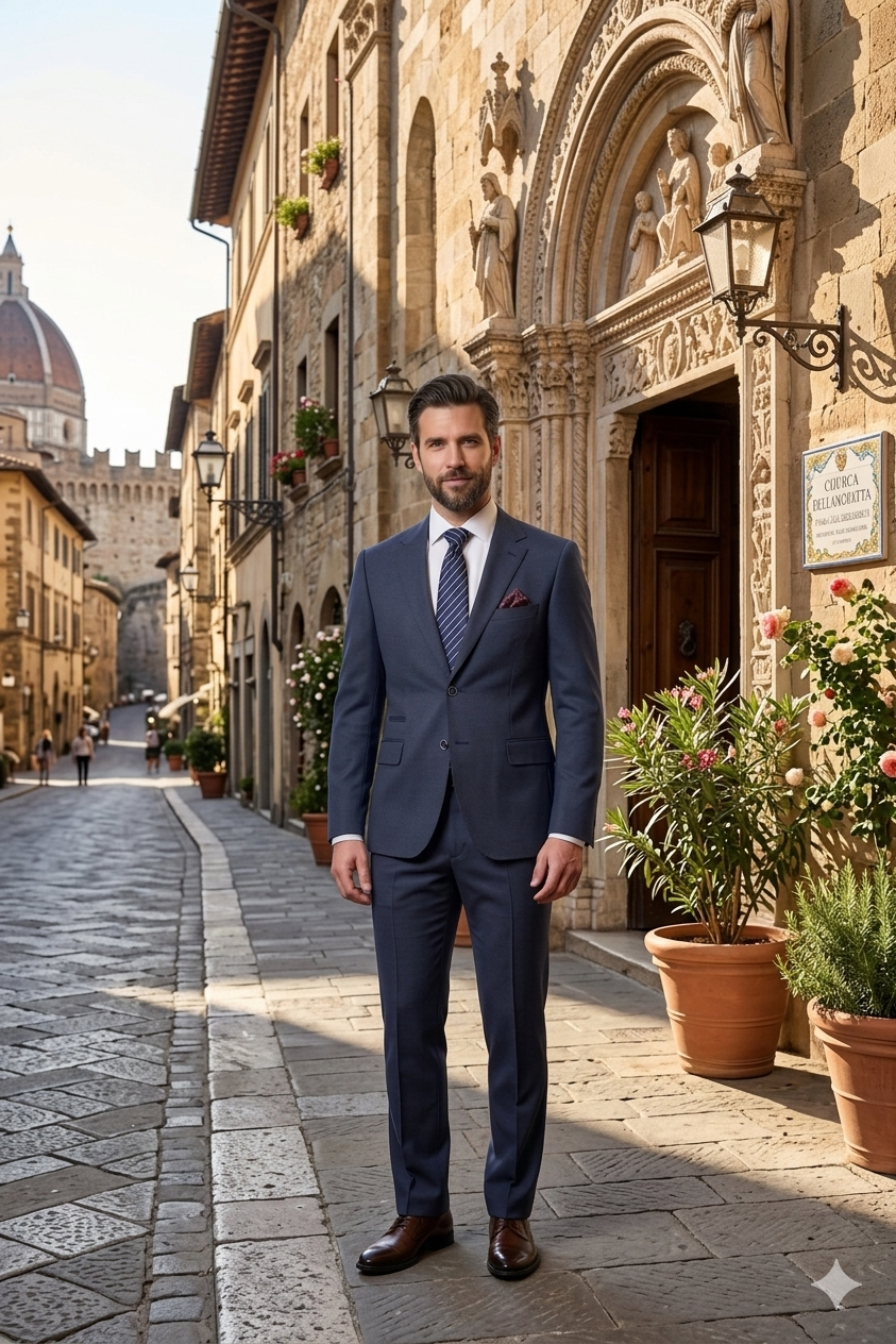 Esta exclusiva propuesta de la firma Capelhi presenta un traje completo de corte contemporáneo, confeccionado en un sofisticado tejido azul marino con una micro-textura geométrica. Diseñado pensando en el hombre moderno que valora la elegancia sin esfuerzo, este conjunto es ideal tanto para entornos profesionales exigentes como para eventos formales.