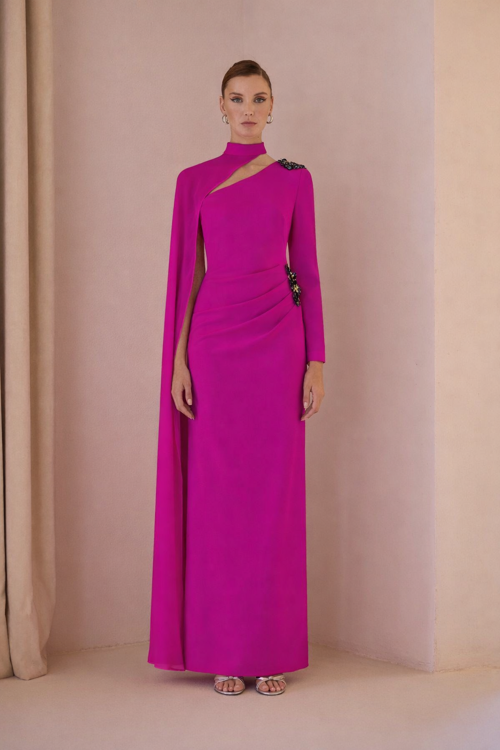 Vestido de madrina CARLA RUIZ. Modelo 52566. Talla 42. Disponible en color FUCSIA.