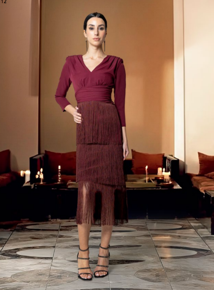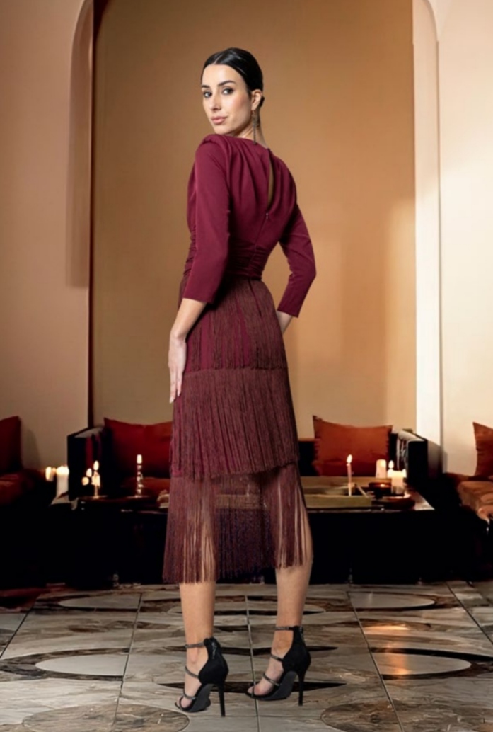 Vestido de manga larga con flecos BETZZIA. Modelo 25522. Color 19. Tallas 42 y 44.