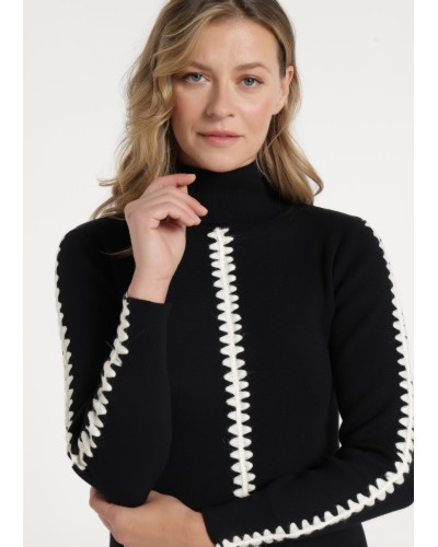 El V&LUCCHINO-Vestido Midi Punto Detalle Trenzado es una prenda de vestir femenina diseñada para ofrecer elegancia y comodidad. Este vestido midi, de color negro, está confeccionado con una mezcla de 60% viscosa y 40% poliéster, lo que le confiere una textura suave y un ajuste favorecedor. El diseño incluye un detalle trenzado que añade un toque distintivo y sofisticado, ideal para diversas ocasiones, desde eventos formales hasta salidas casuales.