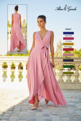 Vestido largo ALMA & GEMELA. Modelo 23021. Disponible en color VERDE ESMERALDA. Talla 42.