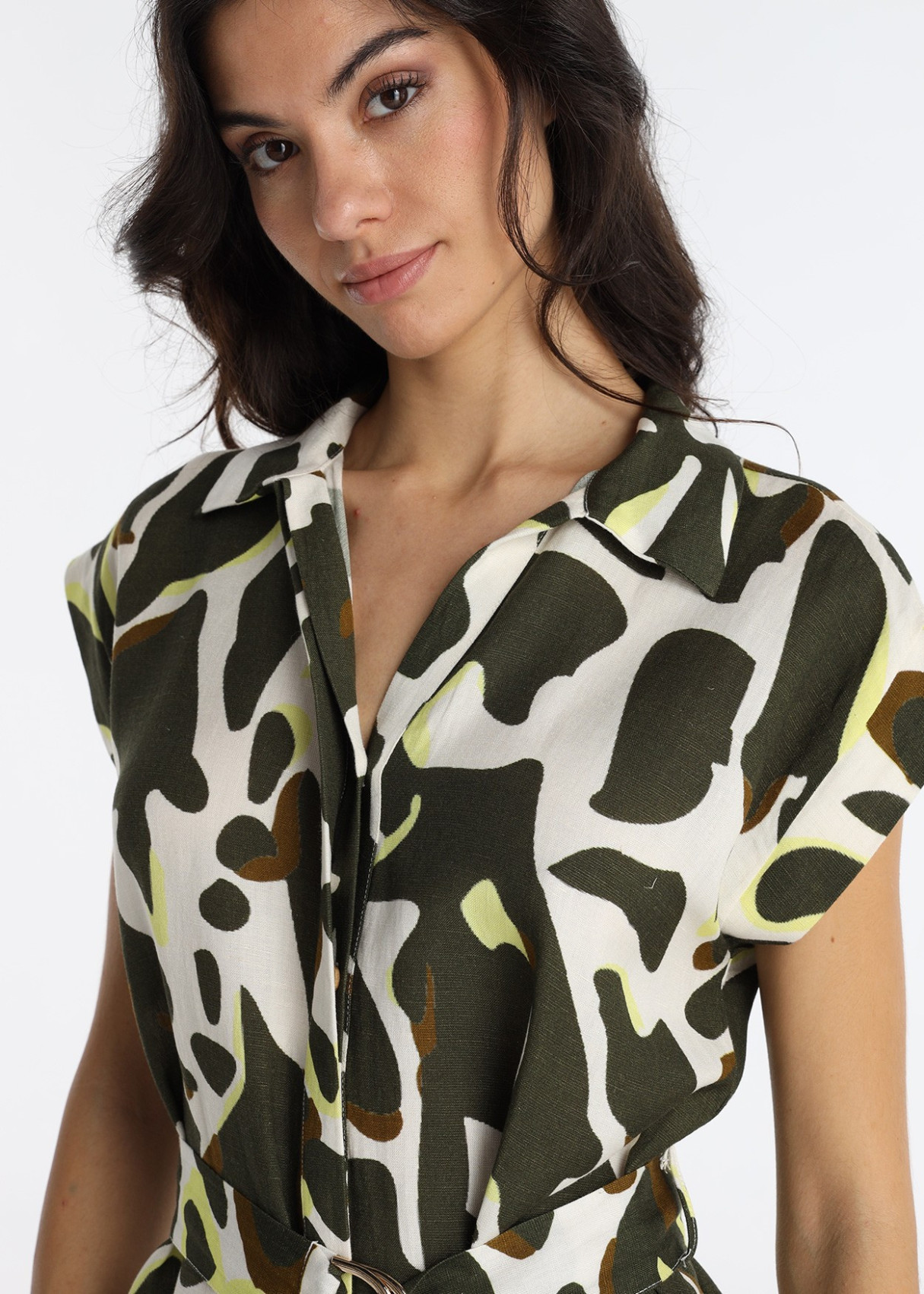 Vestido Largo Camisero Con Estampado Animal Print Verde