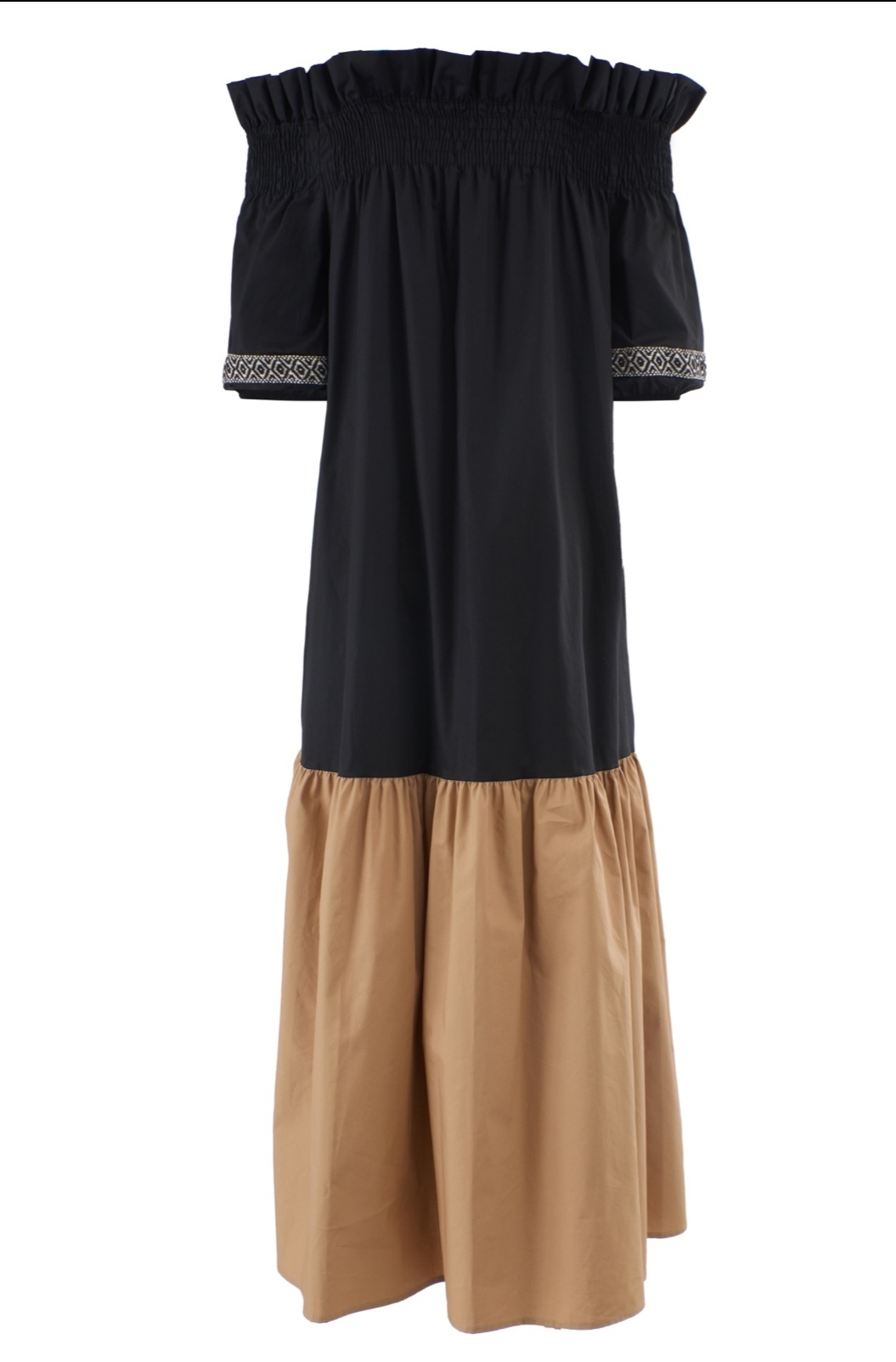 Vestido largo con hombros descubiertos YES ZEE. Modelo A459/EL00/637. Tallas S M y L.