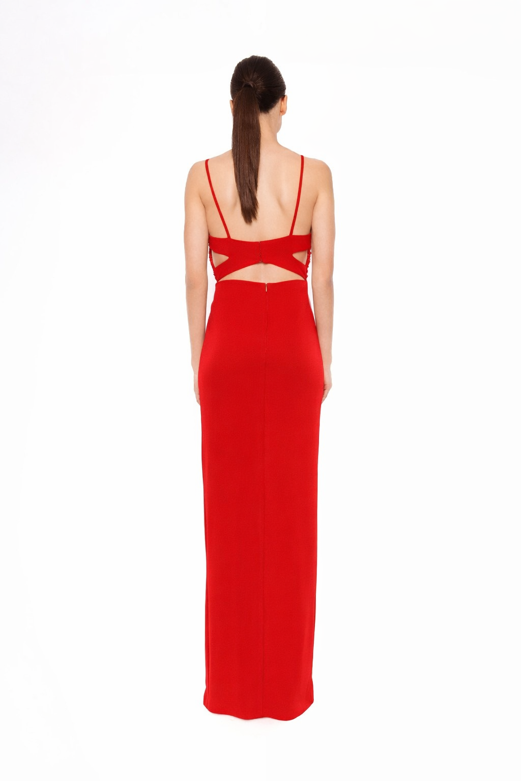 Vestido largo de fiesta CARLA RUIZ Disponible en color rojo.