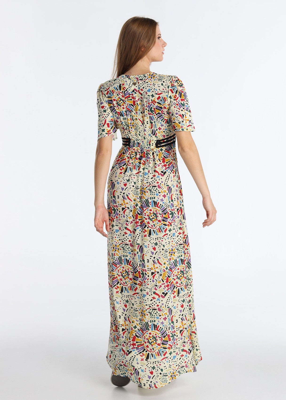 Presencia absoluta. Un vestido maxi con estampado étnico vibrante para no pasar desapercibida este verano.
