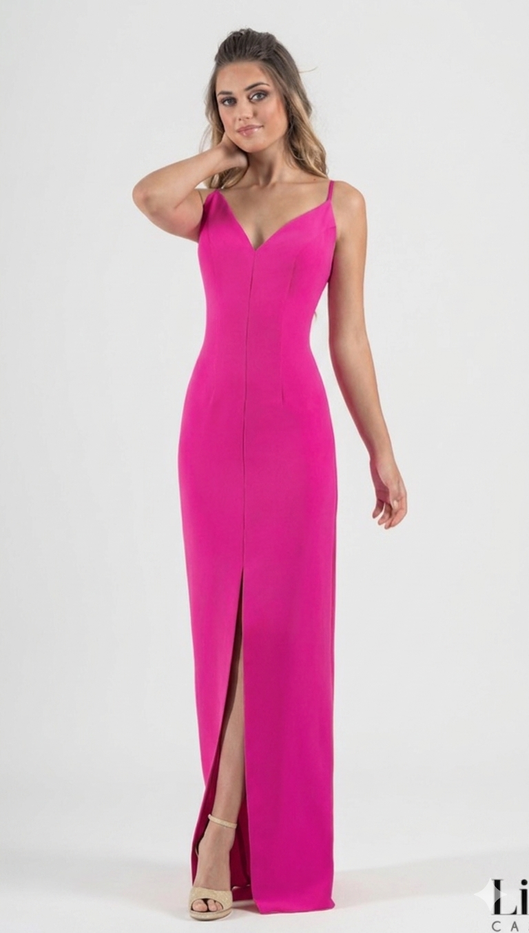Este vestido largo es la definición de sofisticación moderna. Confeccionado en un tejido de alta calidad que se adapta suavemente a tus curvas, destaca por su intenso tono fucsia, ideal para quienes buscan ser el centro de todas las miradas.