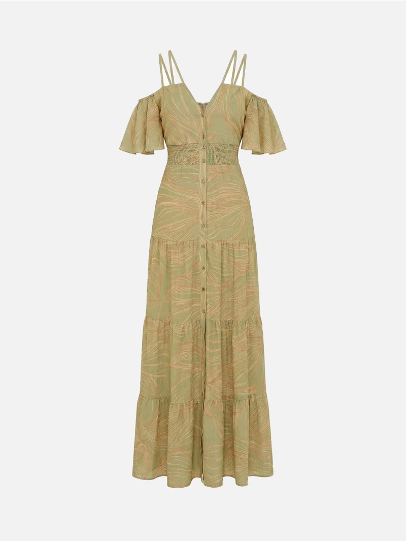 Vestido Maxi de Inspiración Orgánica con Hombros Descubiertos