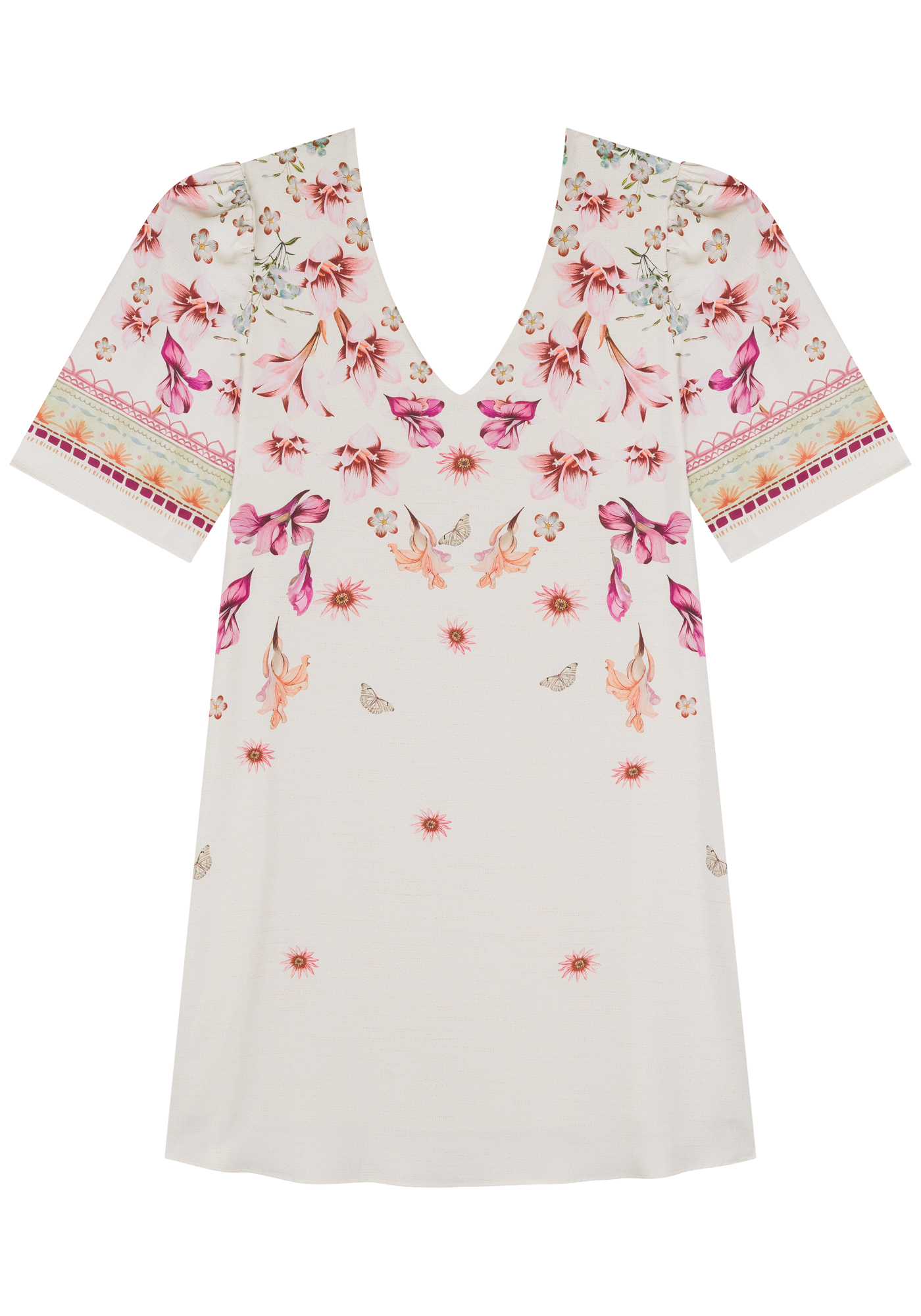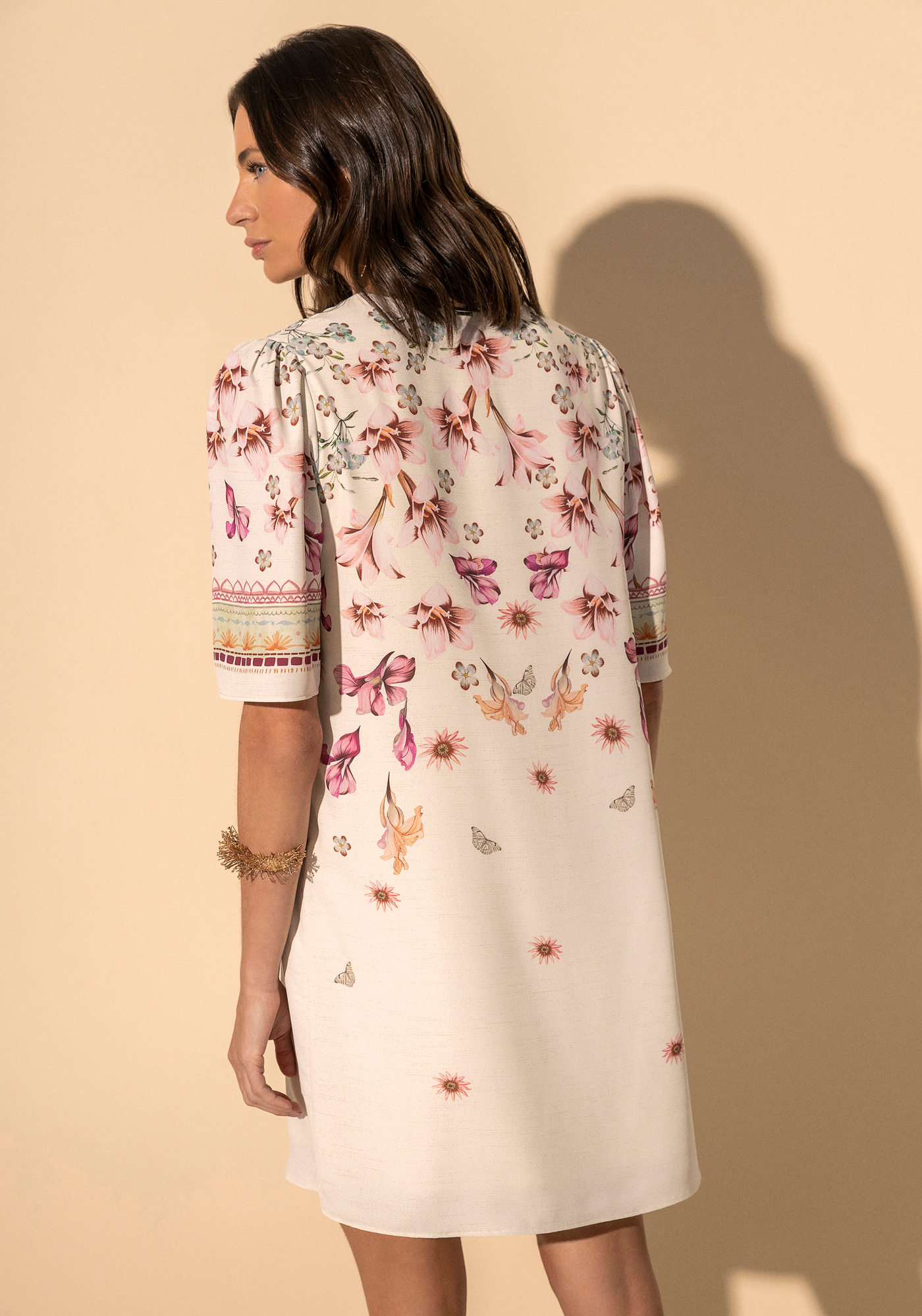 Ligereza y practicidad definen este vestido estampado de manga corta. Su tejido con un sofisticado estampado ofrece durabilidad y comodidad, manteniéndote impecable en cualquier ocasión. ¡Todo lo que tu armario necesita!