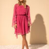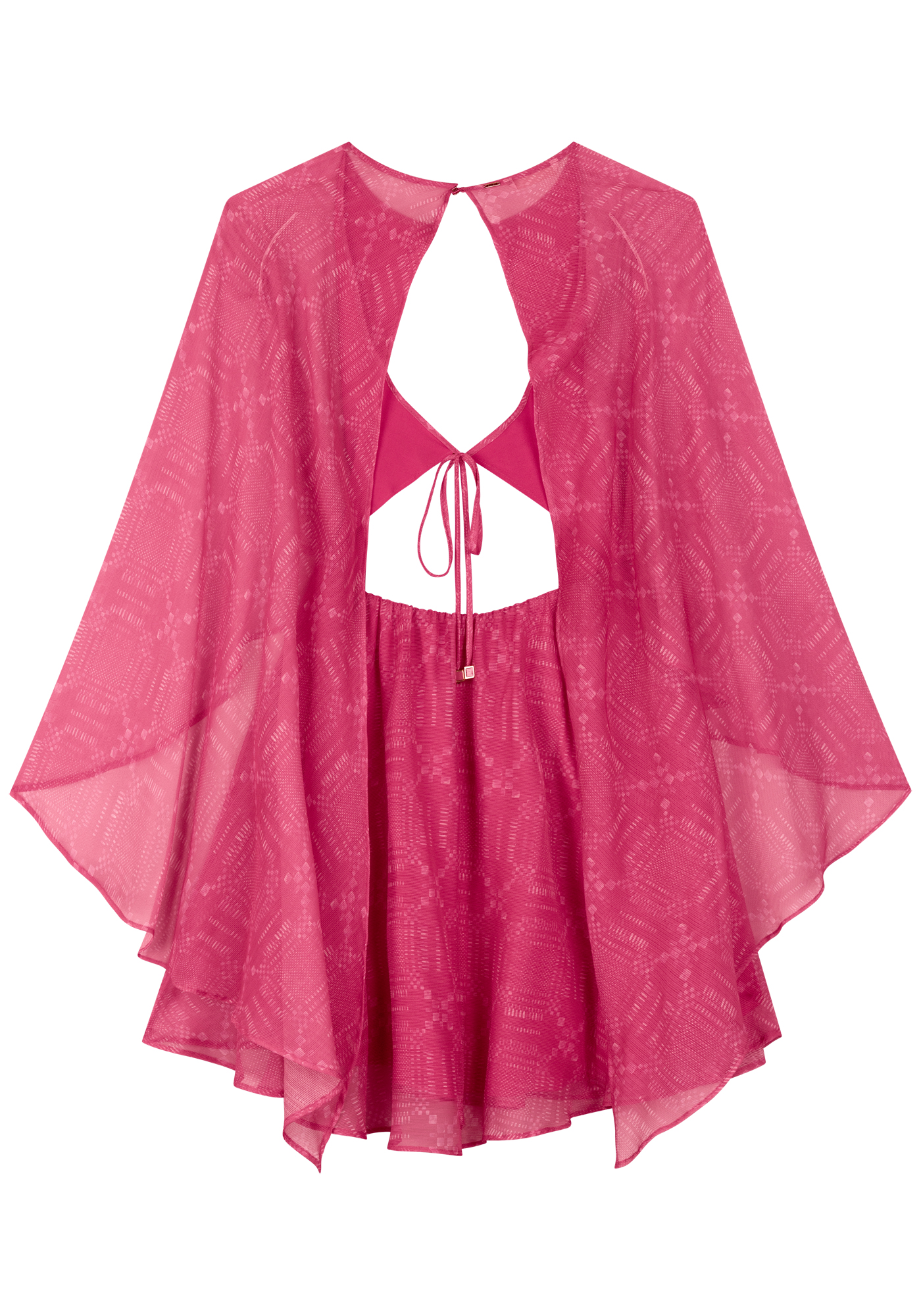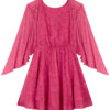Con todo el encanto de la transparencia, este vestido corto cautiva con sus mangas anchas que crean un delicado efecto de capas. Su caída fluida le da un aspecto ligero pero impactante.